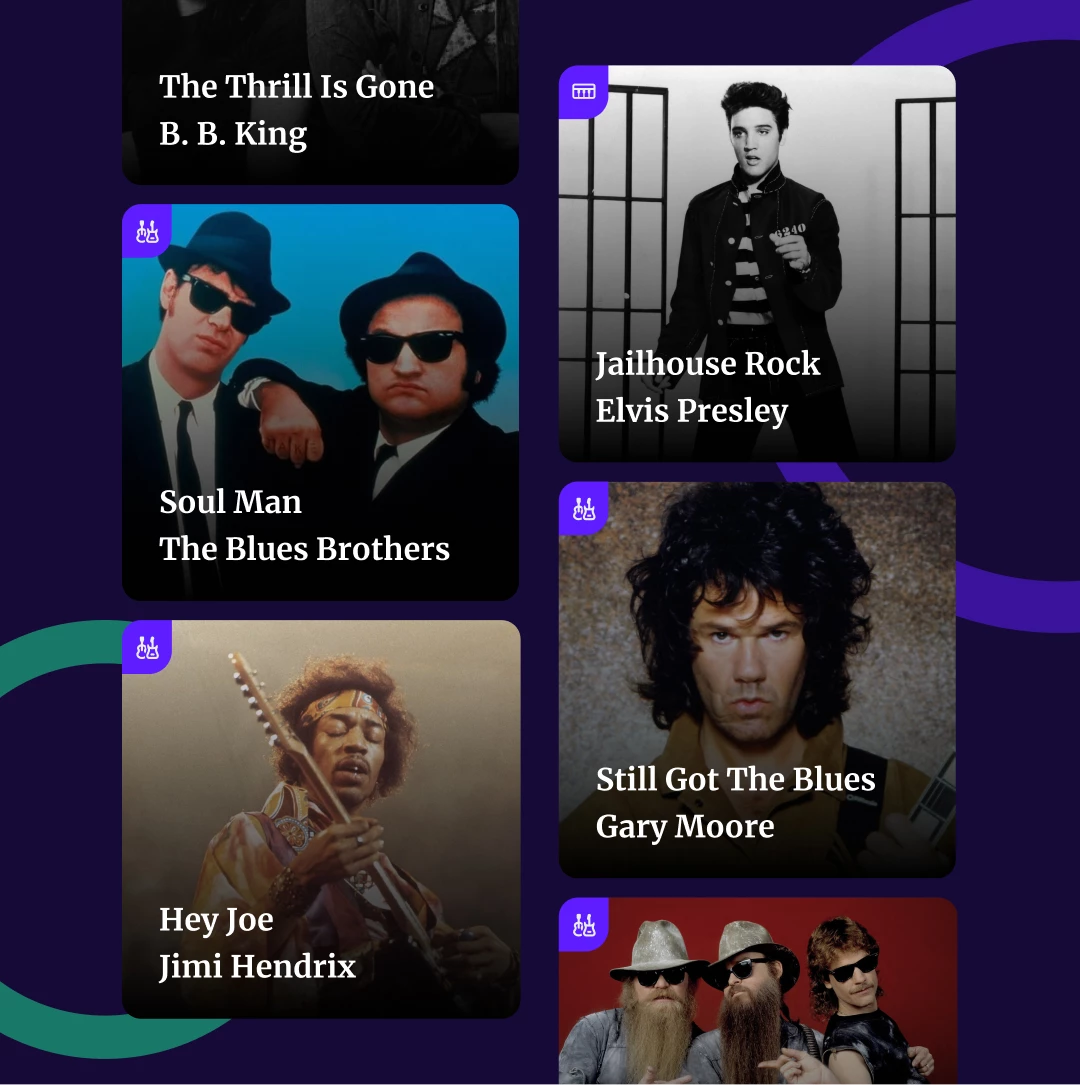Lerne gemeinsam mit uns All-time-Classics von B.B. King, Eric Clapton, Muddy Waters und vielen mehr. Schnapp' dir einfach deine Gitarre oder setz dich ans Klavier und erschaffe selbst Gänsehaut-Momente!