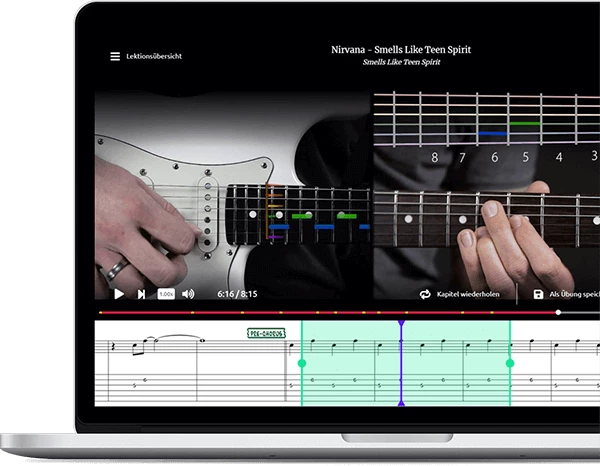 Whether you are a beginner, advanced or returning player: Our guitar course offers customized exercises and targeted learning paths. Whether for hobby, professional development, or a supplement to traditional lessons.